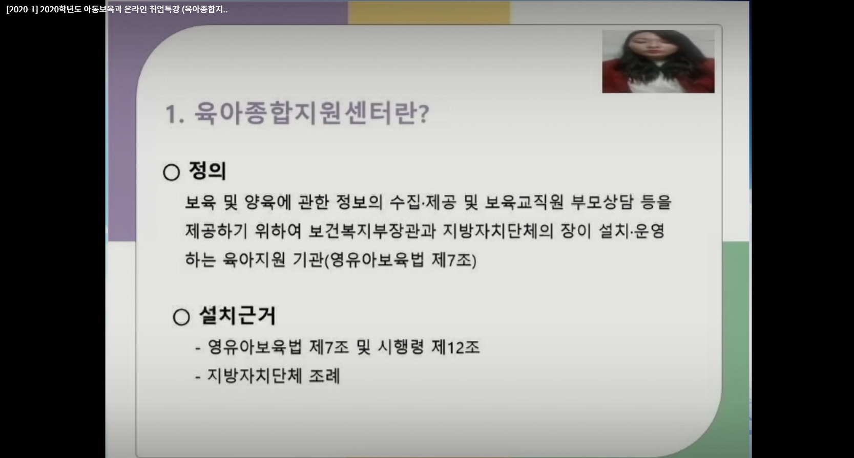 <2020학년도 아동보육과 온라인 취업특강 (육아종합지원센터 취업처 탐방)>