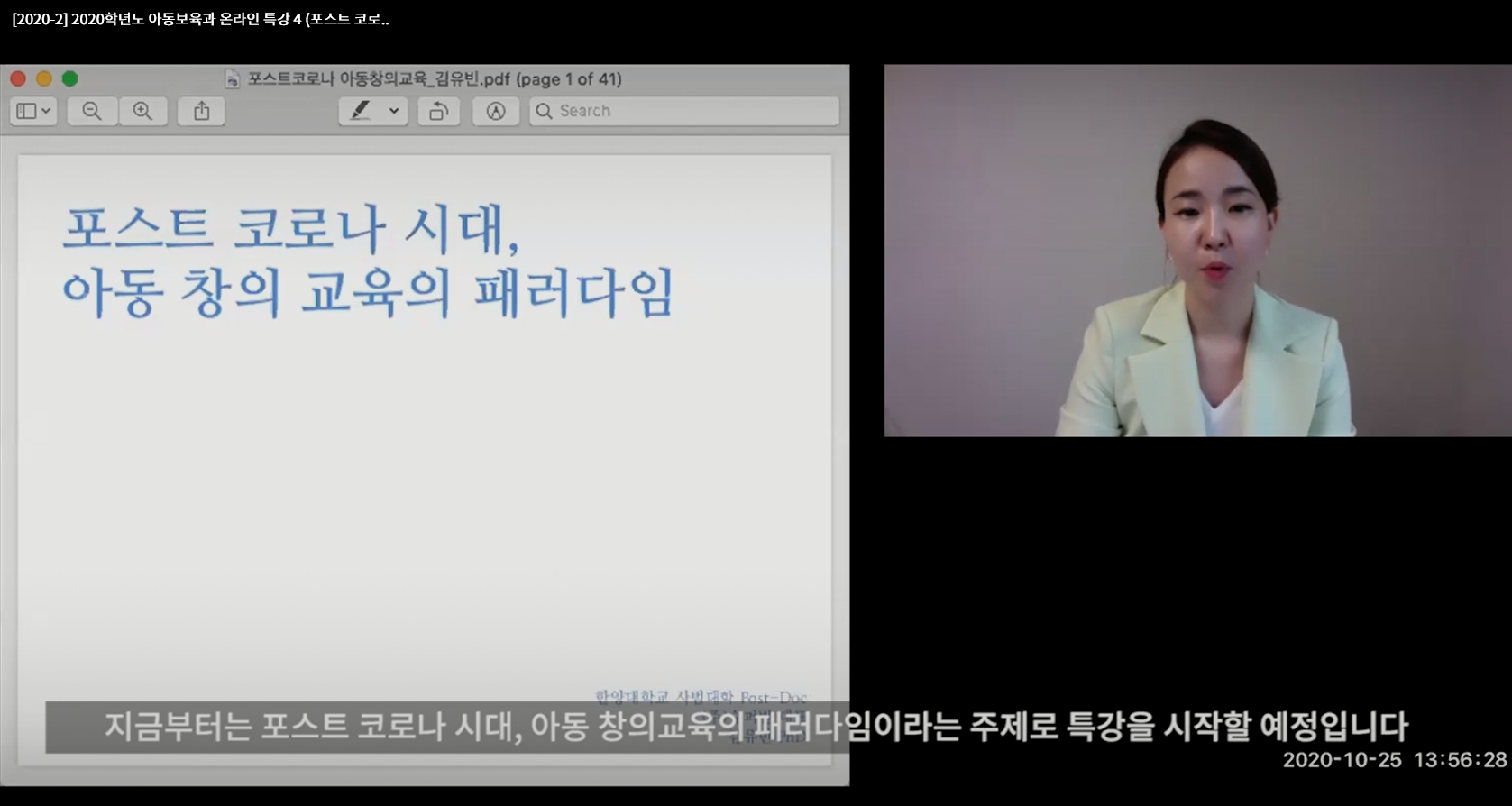 <2020학년도 아동보육과 전문역량강화를 위한 전공특강 (포스트 코로나 시대, 아동 창의 교육의 패러다임)>