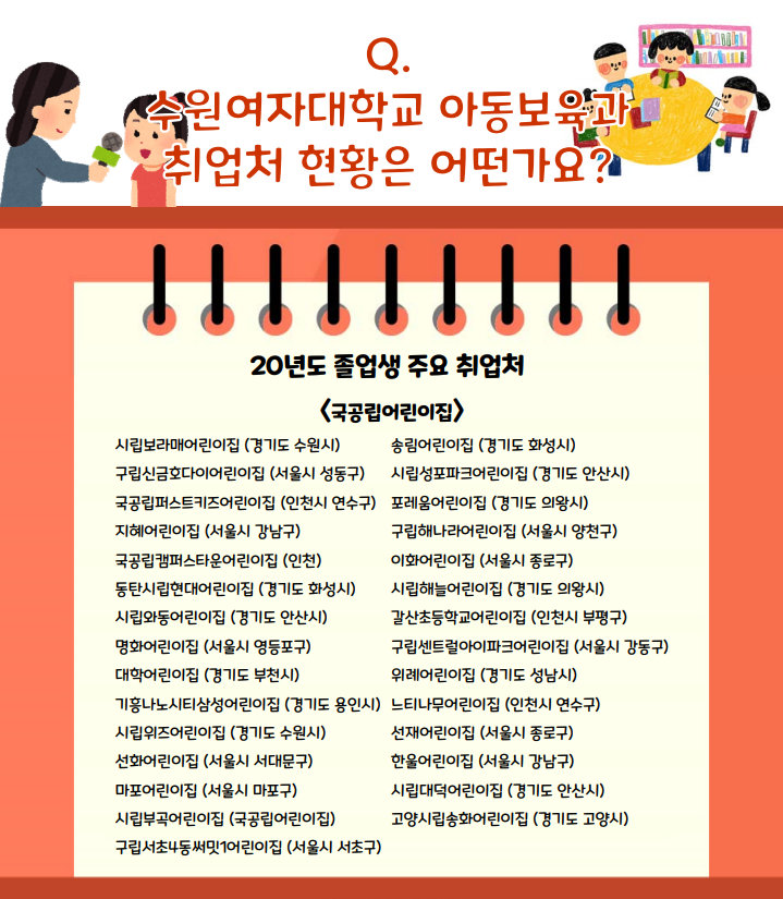 20년도 수원여자대학교 아동보육과 졸업생 주요 취업처